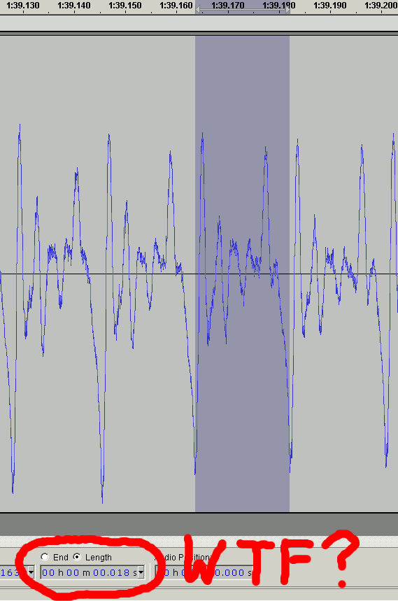 • Wenn ich und Audacity richtig gemessen haben, liegt die tiefste so festgestellte Frequenz, die ich mit meiner Stimme erzeugen kann, bei etwa 61 Hertz. Laut Wikipedia und meinen Berechnungen müsste das etwa ein cis zwei Oktaven unter dem "normalen" cis sein, wo auch das 440-Hz-a zu finde ist. Ist das tief (dürfte Bass sein, oder? xD)? Oder anders gefragt: Ist das normal? xD Wikipedia meint ja "Die Tonhöhe des Grundtons der menschlichen Stimme liegt für die männliche Stimme bei etwa 125 Hz". Da bin ich wohl leicht daneben ... oder habe ich bei der Messung etwas nicht beachtet?