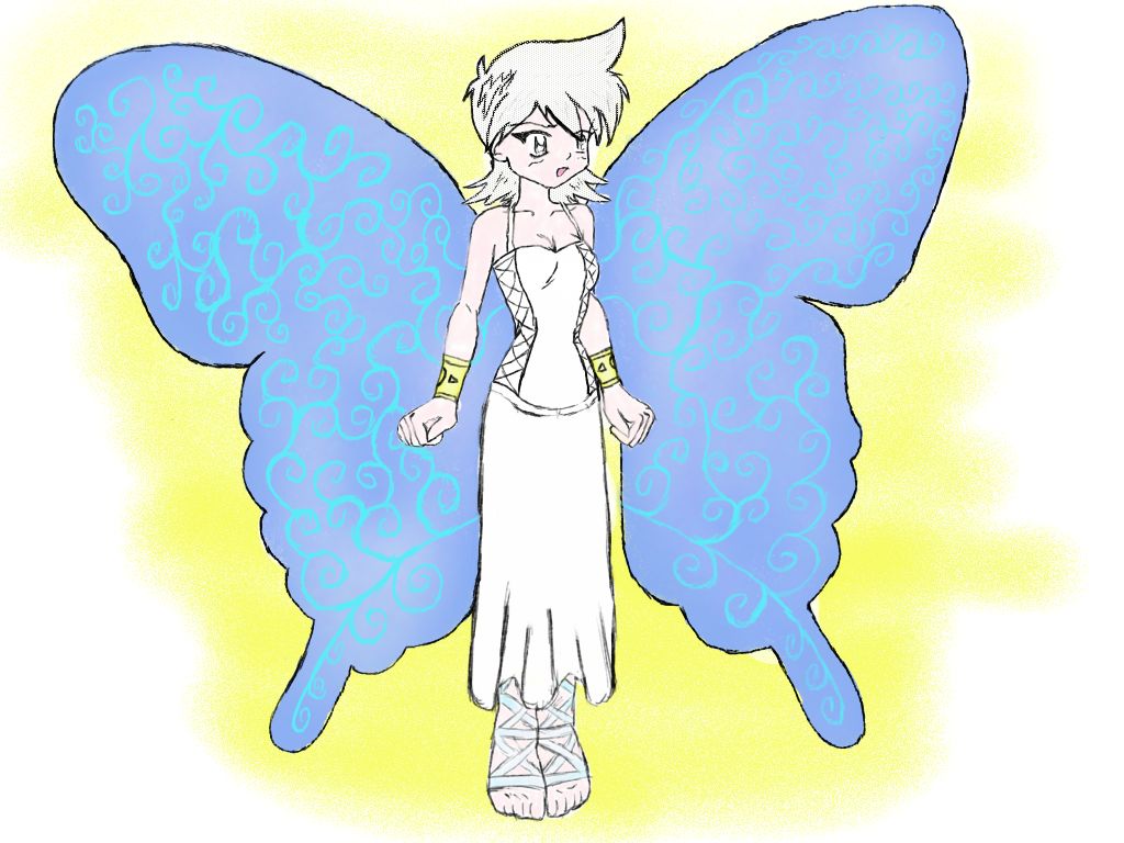 Aussehen und Kleidung: Tja das hat wohl noch Niemand von euch ins leuchtende licht weit reingesehen. Mal sehen Lyra ist ein Kleines Mädchen, Mit Weißem Schulterlangen Haar, Ihre Flügel sehen Aus wie die Eines Schmetterlings mit Blauen Mustern die denen eines Himmelblauer Blauling nachempfunden ist. Ihr Weißes Kurzärmliges Kleid das bis zu den fersen reicht versteckt ihre Beine. Ihre Augen sind Blau Und ihre Gesichtszüge sind die eine Jungen Mädchens das immer freundlich wirkt. Ihre Statur ist schlank. Und sie Trägt Blaue Feenschuhe. Umhüllt ist sie von einem Weißen Licht das Es schwer macht sie wirklich Gut zu erkennen. Doch sieht man Lang genug hinein kann man Lyras gestallt erkennen.