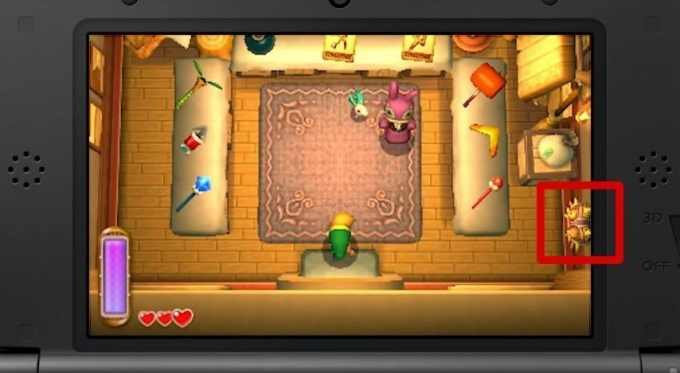 "Ravio, der Besitzer des Ladens, besitzt von den Gegenständen nur ein Exemplar und setzt daher den Preis für den Erwerb sehr hoch an. Bis man die Items schlussendlich kaufen kann und sie dann für immer besitzt, kann man sie jedoch zu Beginn ausleihen. Es besteht dabei keine Ausleihfrist. Allerdings: Verliert man alle Herzen und landet im Game Over-Bildschirm, gehen alle ausgeliehenen Gegenstände verloren, sodass man wieder die Leihgebühr zahlen muss. Bereits erworbene Items sind hiervon jedoch nicht betroffen."