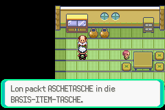 Kurz vor Laubwechselfeld (was ein Name für ein Dorf...) musste ich noch durch das Aschefeld. Als ich vor langer Zeit selbst Saphir auf dem GBA gespielt habe, habe ich hier sehr viel Zeit verbracht,ich glaube für EV-Training, also wusste ich, dass es hier ein Item mit einem für mich sehr lustigen Namen gibt.
