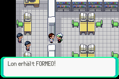 Doch statt sich im Nachhinein irgendwie zu entschuldigen, unterbricht sie unser Gespräch einfach für ein Telefonat – Frechheit sondergleichen. Immerhin entschließt sie sich dann zu einem geordneten Rückzug, und lässt die Forscher frei. Einer dieser schenkt uns zum Dank dann auch direkt ein Formeo, eines meiner Lieblingspokis der 3. Generation, es ist so süß und knudelig, außerdem liebe ich seine Fähigkeit. Es stand fest, ich musste es in mein Team nehmen... Zumindest bis ich die nächste Textzeile las, in der dann aus dem tollen Formeo einfach mal ein weibliches Nidoran wurde... Sowas undankbares, seinen Retter so hinters Licht zu führen :(