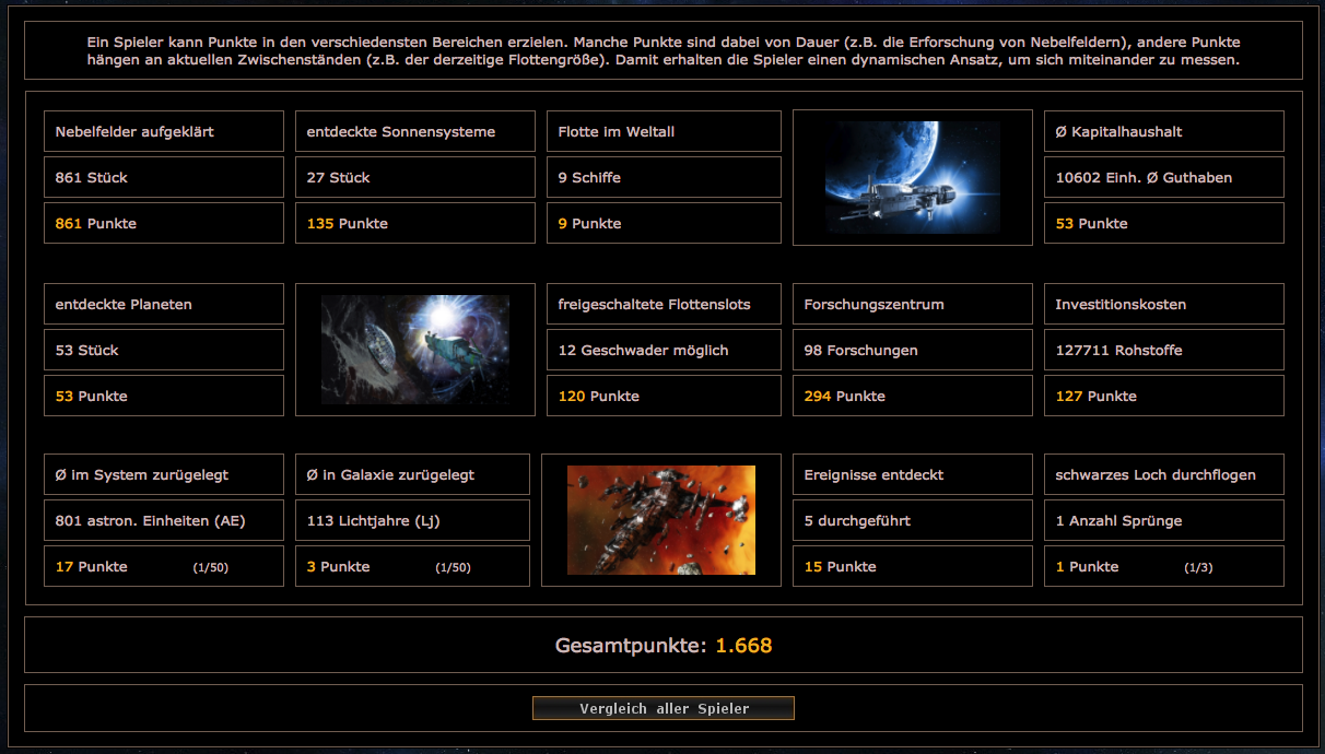 Ein ausführlicher Forschungsstrang erlaubt individuelle Spezialisierung. Die Auswahl unterschiedlicher Schiffe erlaubt es ergiebig Handel zu treiben, seine Gegner effektiv zu bekämpfen aber auch in die Tiefen des Alls vorzustoßen, um individuellen Ereignissen des Spiels zu folgen.